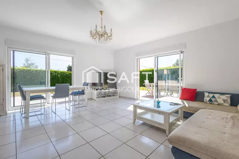 Ce bel ensemble immobilier est implanté sur un terrain totalement plat de 933m², avec garage et cour de stationnement. Il vous donnera accès à la maison principale d'environ 90m² avec pièce de vie ouverte, 3 chambres, salle de bain, wc et cellier. Cette maison dispose d'une grande terrasse sans aucun vis-à-vis.