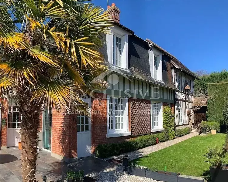 BONNEVILLE SUR TOUQUES ENTREE DE DEAUVILLE MAISON NORMANDE DE CARACTERE AVEC JARDIN TERRASSE EXPOSE SUD GARAGE. ENTREE CUISINE OUVERTE EN OPEN SPACE AVEC TERRASSE BUANDERIE PLEIN SUD. SALLE DE DOUCHES WC. SALON avec CHEMINEE SEJOUR WC INVITES GARAGE. A L'étage 4 CHAMBRES dont UNE CHAMBRE PARENTALE SALLE DE BAINS avec WC. BEAUX VOLUMES POSSIBILITE CHAMBRE AU RDC.