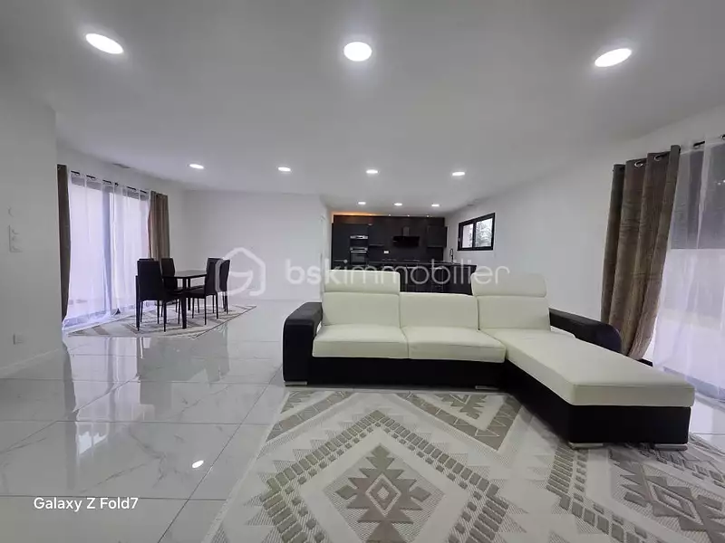 Composée d'une grande pièce à vivre lumineuse avec cuisine équipée ouverte sur séjour , espace cellier buanderie attenant ainsi qu'un accès au garage