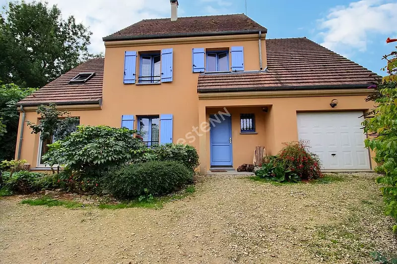 EPERNON à 2km. Pavillon des années 2000 comprenant une belle entrée avec rangements, salon-salle à manger avec cheminée insert (neuf), cuisine séparé, chambre/bureau avec salle d'eau et WC séparé. Le bien se distingue par la présence de deux escaliers intérieurs menant chacun à une partie de l'étage : Le premier escalier dessert un couloir distribuant trois chambres, SDB avec WC, ainsi que l'accès à des combles aménageables. Le second escalier, indépendant, mène à un palier desservant une quatrième chambre. Le tout édifié sur un beau terrain arboré de plus de 1000m² dans un environnement calme et verdoyant. Garage attenant à la maison
