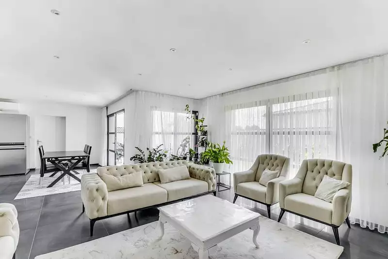 Frouzins – Villa contemporaine 5 pièces de 145 m² avec jardin et double suite parentale Dans une impasse au calme, à deux pas du centre et de toutes les commodités Vous rêvez d'espace et de luminosité ? Cette belle villa récente construite en 2018 saura vous séduire par ses volumes et ses prestations modernes. Les atouts de la maison : Un vaste séjour traversant de plus de 50 m², baigné de lumière, avec accès direct au jardin. Une cuisine contemporaine entièrement équipée ouverte sur le séjour. Deux suites parentales : une au rez-de-chaussée avec salle d'eau et terrasse privative, une seconde à l'étage avec salle d'eau et son dressing. À l'étage également : deux autres chambres, une salle de bains familiale, un WC séparé et une grande terrasse exposée plein sud. À l'extérieur : Parcelle de 460 m² entièrement clôturée et piscinable, sans vis-à-vis. Joli coin potager et puits. Garage de 22 m² avec accès direct à la maison. Cette maison offre des prestations de qualité : climatisation réversible, classe énergétique A, environnement paisible et sécurisé. Un cadre de vie idéal pour une famille recherchant modernité et tranquillité; Cette maison offre des prestations de qualité : climatisation réversible, classe énergétique A, environnement paisible et sécurisé. L'École Maternelle Publique George Sand, l'École Élémentaire Publique Anatole France et le Collège Pablo Picasso sont implantés à moins de 10 minutes à pied, tout comme deux crèches. Niveau transports en commun, on trouve six gares à moins de 10 minutes en voiture. Les autoroutes A64 et A620 et la nationale N124 sont accessibles à moins de 10 km. Pour vos loisirs, vous pourrez compter sur un tennis à quelques minutes. Il y a également des restaurants, des commerces, des boulangeries, deux boucheries-charcuteries, une épicerie et un bureau de poste. Envie d'en savoir plus sur cette maison à vendre ? Prenez contact avec notre agence immobilière KW ADVANCE.