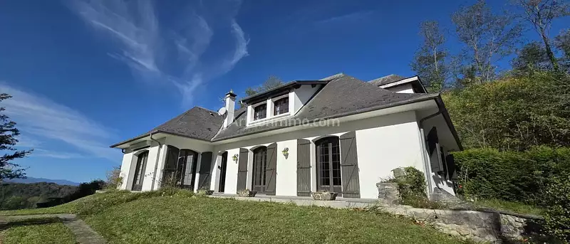 Maison 6 pièces - vue panoramique exceptionnelle sur la chaîne des pyrénées au calme absolu, sur une vaste parcelle de 3 260 m², un cadre unique grâce à sa vue panoramique d'exception sur la chaîne des pyrénées, véritable tableau naturel qui accompagne chaque moment de la journée. edifiée sur 2 niveaux, elle se compose de la manière suivante : rez-de-chaussée : entrée et dégagement séjour lumineux avec cheminée, profitant déjà de la vue cuisine séparée entièrement aménagée, meubles en bois massif buanderie 3 chambres salle d'eau wc séparé accès direct au sous-sol etage : 2 chambres supplémentaires offrant une vue dégagée sur les montagnes salle d'eau avec wc sous-sol complet (113.14 m²) : garage cave réserve / espace de stockage À l'extérieur, un jardin arboré et soigneusement aménagé permet de profiter pleinement du panorama exceptionnel sur les pyrénées. un parking complète l'ensemble. ce bien combine quiétude, environnement préservé et vue imprenable, un atout rare sur le secteur. quelques rafraîchissements sont à prévoir pour sublimer tout son potentiel. -