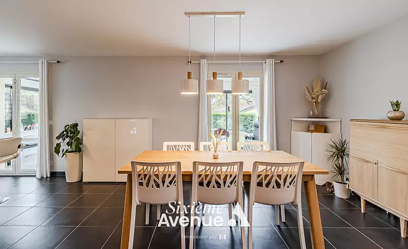 Nouveau projet de vente à MARCY - Sixième AVENUE vous dévoile une maison parfaitement entretenue et construite par ses propriétaires actuels. Située dans un quartier résidentiel, calme et sécurisant, cette adresse bénéficie d'un cadre très recherché, où les ventes sont rares tant les résidents apprécient la qualité de vie. Cette maison clé en main offre une excellente performance énergétique ainsi qu'un jardin clos et arboré, particulièrement agréable. La vaste pièce de vie prolongée par une véranda, orientées Sud, Est et Ouest, crée un espace lumineux de plus de 60 m² permettant de profiter du jardin en toutes saisons. A l'étage, les 4 chambres disposent de rangements intégrés dont une suite avec espace bains privatif. Un soin attentif a été apporté à chaque détail : cuisine équipée contemporaine avec îlot central, cellier aménagé, buanderie, nombreux placards, garage isolé, peintures soignées? L'ensemble présente un état quasi neuf. Les prestations techniques renforcent encore le confort : chauffage au sol, pompe à chaleur air/air réversible, menuiseries avec moustiquaires, double vitrage de la véranda et volets en aluminium. Idéalement située à proximité immédiate du village de Charnay et de ses commerces (boulangerie, poste, marché couvert, restaurants), la maison se trouve également à seulement 8 minutes d'Anse et de toutes ses commodités : TER, collège, grande surface, services bancaires, stations-service et équipements sportifs. Les écoles et transports scolaires sont accessibles à pied. Pour tout renseignement ou pour organiser une visite, l'équipe de Sixième AVENUE est à votre disposition au 04 37 46 50 50. Biljana STOJILJKOVIC (EI) Agent Commercial - Numéro RSAC : 912 348 224 - LYON.