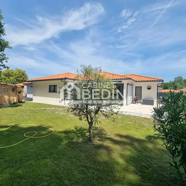 Proche des commodités Contemporaine de plain pied sur terrain de 757 m² composée d'une pièce de vie avec cuisine ouverte et intégrée,4 chambres dont une suite parentale avec dressing et salle d'eau wc,salle de bains, buanderie, terrasse couverte et fermée donnant sur jardin arboré et grand garage de 58 m² isolé et carrelé.