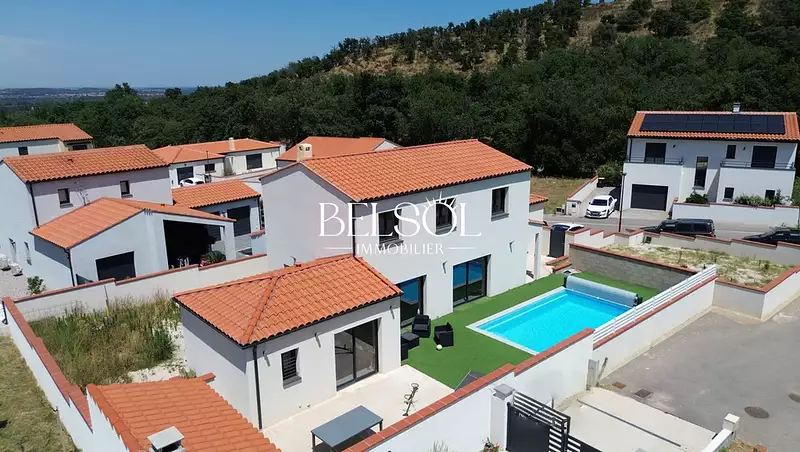 Villa contemporaine T5 avec piscine et garage, vue Albères