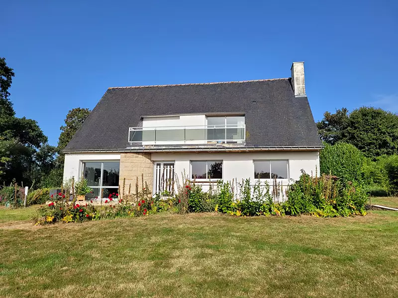 BAISSE DE PRIX !!! IDEAL ANIMAUX - GRAND TERRAIN. En campagne de Moréac à vende maison traditionnelle d'environ 145 m² sur sous sol complet (garage, buanderie, chaufferie). - Au rez-de-chaussée une entrée, une cuisine fermée aménagée/équipée (plaque cuisson, four, hotte, réfrigérateur), un salon/séjour, 2 chambres, une salle de bains, des sanitaires. - Au 1er étage : 3 chambres avec placards, une salle de bains + douche, des sanitaires. Le tout sur un terrain d'environ 10 000 m² (à borner à la charge du vendeur). (4.56 % honoraires TTC à la charge de l'acquéreur.)