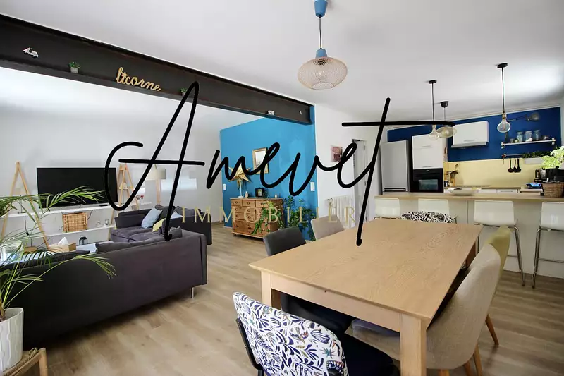 La pièce de vie, baignée de lumière grâce à son exposition sud, bénéficie d'un double séjour de 32m2 et d'une cuisine ouverte aménagée et équipée de plus de 10m2. Côté pratique un cellier jouxte la cuisine pour le rangement.