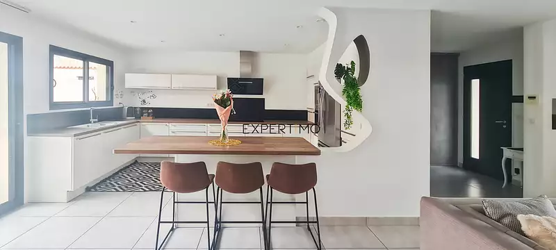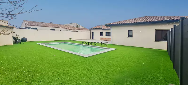 Situé a 10mn de Narbonne, sur une commune avec toutes les commoditées, magnifique villa , composée d'une entrée, une grande pièce de vie avec cuisine ouverte donnant sur une terrasse de 38m2, 3 belles chambres avec placard, une salle de bain avec douche et baignoire, une suite parentale avec salle d'eau et dressing donnant sur l'extérieur avec piscine. 2 WC