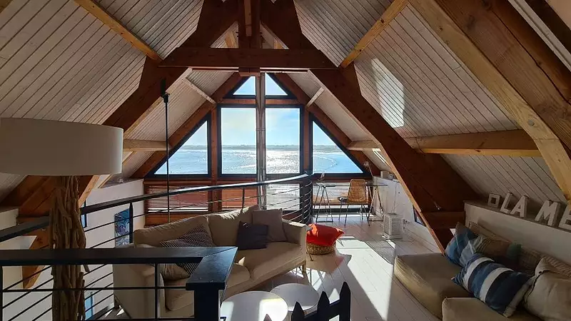 Villadici est heureuse de vous proposer une contemporaine aux vues mer qui profite d'une situation exceptionnelle à juste quelques pas de la plage de Pors Carn La Torche... Cette propriété d'architecte des années 2000, pleine de charme et à la décoration cosy, très lumineuse, s'articule sur 145m2 autour de 2 maisons reliées par un espace de vie , la cuisine et un coin repas . Au rez de chaussé, une première maison offre un agréable séjour avec son poêle à bois dominé par une mezzanine, une chambre avec sa salle de bain attenante et des WC indépendants. La cuisine aménagée-équipée et le coin repas avec accès aux terrasses extérieures font le lien avec la seconde maison disposant d'une chambre, d'une salle de bains et d'un WC. A l'étage, la mezzanine -bureau ouverte sur l'océan et deux chambres vue mer pour l'une des maisons, une chambre vue mer et un bureau pour la seconde. Le jardin accueille trois terrasses pour les belles journées et un garage bien pratique. C'est un endroit accueillant et unique, tourné vers l'océan et qui n'attends que vous pour une belle visite, une jolie rencontre. N'hésitez pas à consulter la vidéo en ligne ... Pour tout contact : Laurent Hascoat au 06 12 01 30 88 Agent commercial N°815 319777 RSAC Quimper Les informations sur les risques auxquels ce bien est exposé sont disponibles sur le site Géorisques : https://www.georisques.gouv.fr (4.24 % honoraires TTC à la charge de l'acquéreur.) Laurent Hascoat (EI) Agent Commercial - Numéro RSAC : 81531977700018 - .