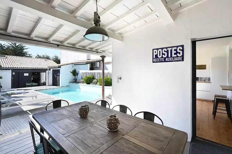 D'une surface de 145 m², elle offre un bel agencement familial comprenant 6 chambres lumineuses, 2 salons accueillants et de nombreux rangements. À l'extérieur, profitez d'un jardin intime, d'une terrasse ensoleillée et d'une piscine, idéals pour les moments de détente ou les réceptions estivales. Les finitions de qualité mettent en valeur l'authenticité de la bâtisse tout en offrant tout le confort moderne. Proche des commodités locales et des plages, cette propriété représente une opportunité rare pour une vie de villégiature ou une résidence principale raffinée.