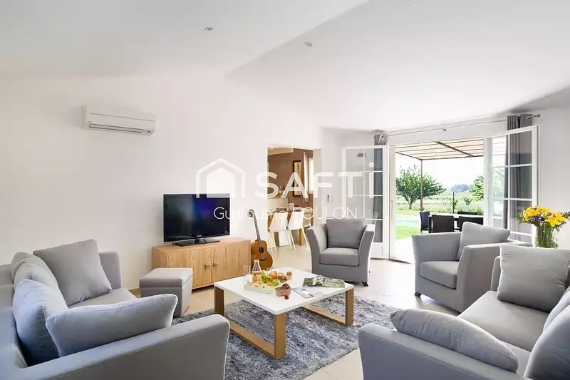 D’une superficie habitable d’environ 147 m², la villa séduit par ses volumes généreux et sa distribution fluide.