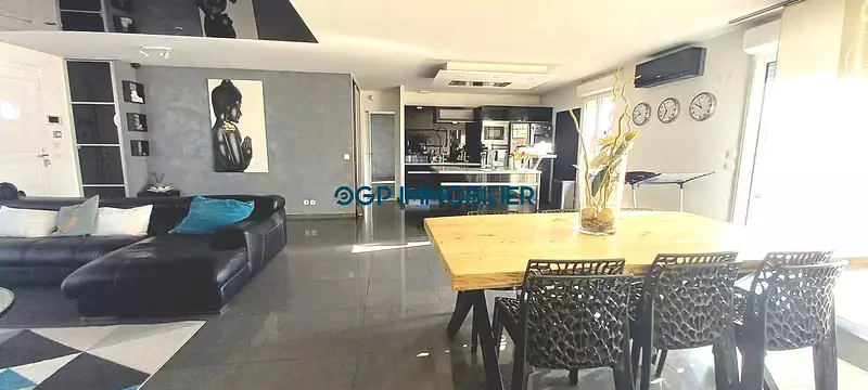 | Cuisine ouverte, équipée | Séjour de 54 m² |