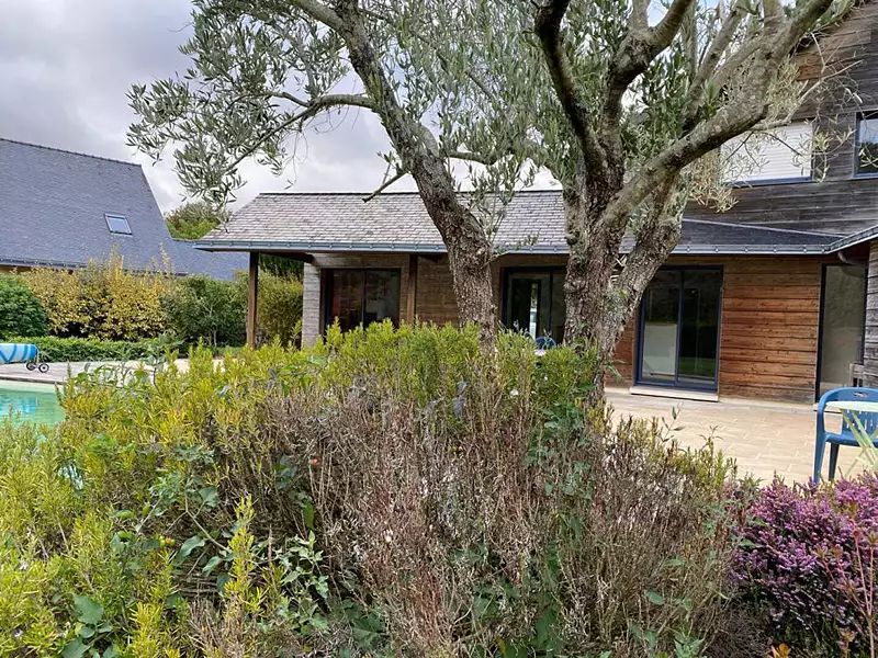 Je vous propose à l'entrée de Vannes , sur la commune de THEIX cette agréable maison d architecte à ossature bois de 145M2 construite sur une parcelle arborée de 1500M2.Elle offre un cadre de vie dans la campagne à 10minutes du centre ville de Vannes;Chaleureuse, confortable et lumineuse elle présente de beaux volumes de vie ouverts sur une terrasse exposée sud donnant sur un jardin paysager et une piscine.Le rez de chaussée se compose d'une entrée avec placards , une cuisine aménagée équipée ouverte sur un bel espace salon salle à manger.le salon dispose d'une cheminée permettant les soirées d'hiver au coin du feu.L'espace nuit offre Une suite parentale avec dressing sur mesure ouverte sur la terrasse plein ouest , salle de bain douche wc privatifs .Un deuxième chambre sur ce niveau, .L'étage présente 2 belles chambres avec placards un wc indépendant, une salle d'eau un bureau .