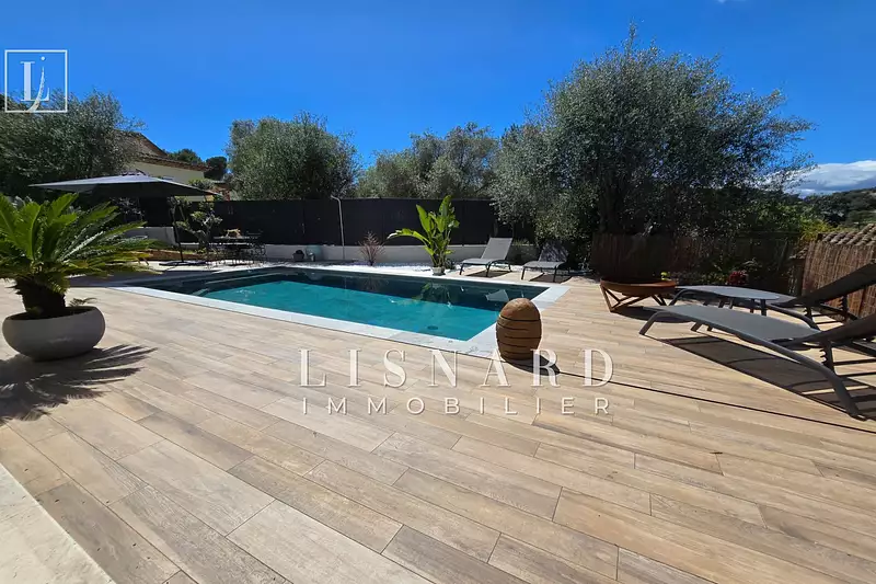 Magnifique maison moderne dans un quartier calme de Vallauris. Une propriété récente et individuelle de 145 m², construite en 2022 sur un terrain de 1428 m². Cette maison se compose au rez-de-jardin d'un salon avec cuisine américaine exposé sud, donnant sur une terrasse et une piscine, une buanderie, une chambre de plain-pied avec salle d'eau et un wc. A l'étage, 3 chambres avec deux salles d'eau et un wc indépendant. Ses prestations de haute qualité comprennent une climatisation, des volets roulants électriques, du double vitrage, une piscine, un plancher chauffant et de nombreux stationnements. Son état intérieur est neuf. Elle est chauffée par une pompe à chaleur et est raccordée au tout-à-l'égout.