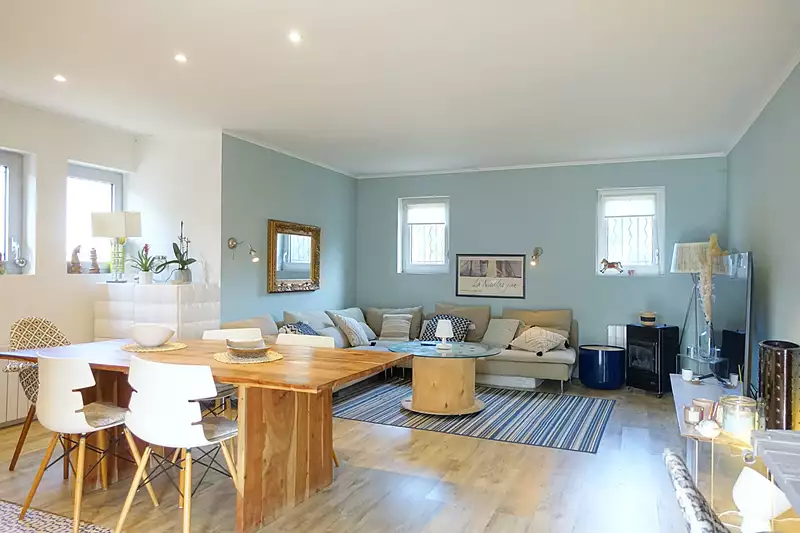 Votre agence l'immobilière des Collines vous présente : Quartier résidentiel sur les hauteurs du Logis-Neuf, villa individuelle type 6 parfaitement entretenue et composée de 2 appartements indépendants exposés Sud. Idéal pour 2 familles, un complément de revenus, ou une profession libérale. L'appartement de l'étage bénéficie de nombreuses ouvertures qui vous permettront de profiter d'une vue dégagée sur la nature alentour. Il est doté d'un grand salon salle manger de 28 m², traversant, et ouvrant sur une première terrasse au Sud, et une seconde au Nord, d'une cuisine séparée pouvant être ouverte sur la pièce de vie, et de 2 chambres avec chacune placard et salles d'eau privative. Au rez-de-chaussée, l'appartement a été entièrement redécoré au goût actuel, le séjour de 36 m² bénéficie d'une cuisine ouverte, l'une des 2 chambres ouvre sur une terrasse où vous apprécierez profiter du soleil. Salle d'eau avec WC, buanderie, et grande penderie dans le couloir. Le terrain d'environ 550 m² est plat, clos, arboré, avec piscine et terrasses. Honoraires charge vendeur Visite virtuelle sur notre site internet. Michel LEVY (EI) Agent Commercial - Numéro RSAC : 413 384 371 - MARSEILLE.
