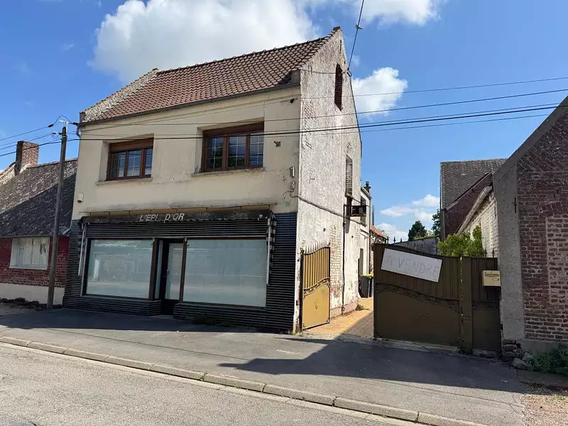 A vendre dans le centre du village, un ancien local commercial ainsi qu'une habitation attenante et un entrepôt de 150 m² environ avec accès voiture ou fourgon.