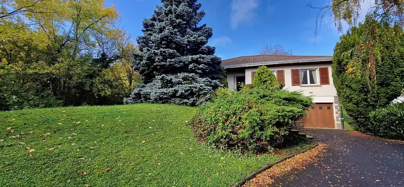 Maison individuelle des années 70 implantée sur une belle parcelle de plus de 1000m2. Au niveau principal: séjour double avec cheminée à foyer ouvert - cuisine - 3 chambres - salle de bains et WC- En sous-sol : 2 pièces qui peuvent être transformées en chambre - grand garage avec espace buanderie - cave. Il faudra prévoir des travaux pour mettre en valeur le charme de cette maison.
