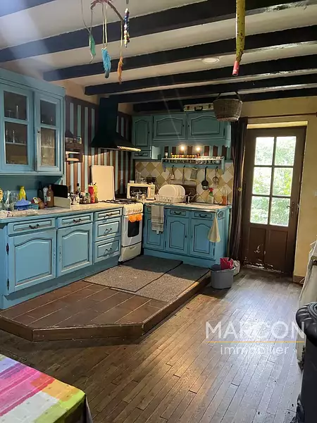 20 minutes de FELLETIN. Réf: 88545. Une maison comprenant un rez-de-chaussée en partie sur cave de: cuisine (poêle à bois), salon (poêle à bois). 1er étage (chauffage électrique par convecteurs): palier, 3 chambres, salle de bains-wc.2ème étage mansardé: une chambre, une grande chambre à finir, une petite pièce pour salle d'eau (arrivée d'eau et évacuation). Grande dépendance non attenante sur 2 niveaux. Remises. Terrain attenant de 4260 m² et terrains non attenants dans le hameau de 4267m². Prix: 148 000 euros (honoraires d'agence inclus de 7.24% à la charge de l'acquéreur). Marcon immobilier réseau de 3 agences AUBUSSON-GUERET-LA SOUTERRAINE.