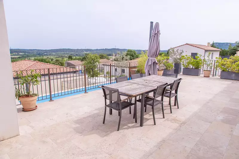 Fiche Id-SUP178626 : Située au calme à 5 minutes de Sommières et 25 minutes de Nîmes, cette villa de 145m2 construite en 2021 vous séduira par sa vue panoramique sur la plaine, ses prestations modernes et son cadre de vie. Elle est composée de 4 chambres dont une belle suite parentale, de 2 salles de bain, 2 WC, d'une cuisine ouverte équipée, d'une grande pièce de vie, d'une terrasse de 60?m² exposée sud-est, d'une piscine avec vue, d'un grand garage de 85m2 et d'une buanderie, le tout sur un terrain de 826m2. Couvert par des garanties décennales. - Mentions légales : Proposé à la vente à 449000 Euros (honoraires à la charge du vendeur) - DPE en cours - Affaire suivie par Mr Guilhem JULLIAN (Agent commercial independant) - Reseau Immo-Diffusion Moussac - Pour plus d'informations, contactez notre secrétariat au 09 74 53 13 81 (Appel gratuit ou prix d'une communication locale)