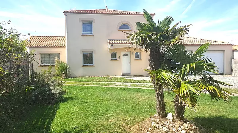 Tharon Plage, 800m des commerces, maison édifiée en 2004 d'une surface habitable de 146m² composée comme suit: Hall d'entrée, chambre avec placard, wc avec lave mains, salle d'eau, bureau, cuisine aménagée équipée ouverte sur un beau séjour salon avec poêle à granules. Véranda de 20m² ouverte sur le jardin. A l'étage: palier desservant trois chambres avec placard, une salle de bain et un wc. Double garage, abris de jardin, préau , carport pouvant accueillir un camping car. Panneaux solaires . Le tout sur un jardin clos et arboré , sans vis à vis d'une surface de plus de 1100 m². (3.50 % honoraires TTC à la charge de l'acquéreur.) Copropriété de 27 lots - dont 27 lots habitation. Charges annuelles : 70 euros.