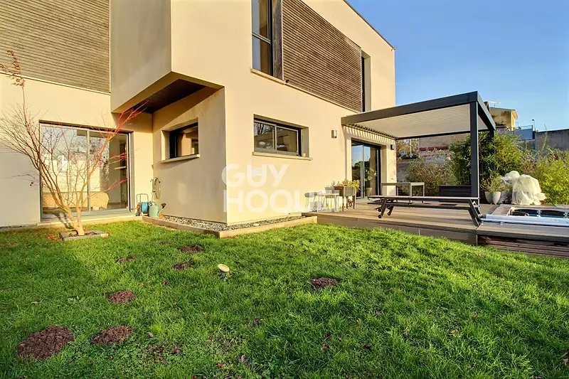 Maison 6 pièces au calme, de bon standing, avec terrasse et piscine, à vendre à Tomblaine (54510). Située dans un environnement calme et résidentiel, cette maison contemporaine construite en 2019 offre de belles prestations et un excellent confort de vie. D'une surface de 145 m² sur un terrain de 550 m², elle se compose d'un spacieux séjour double de 40 m² baigné de lumière, d'une cuisine moderne aménagée et équipée, d'une suite parentale comprenant une salle d'eau privative et un dressing, ainsi que de trois autres chambres entre 10 et 14 m², toutes équipées de placards intégrés. La maison dispose également d'une salle de bain, de deux WC et de nombreux espaces de rangement. Le confort est assuré par un chauffage au sol alimenté par une pompe à chaleur. A l'extérieur, vous profiterez d'une terrasse, d'un jardin soigneusement entretenu et d'une piscine chauffée récente, idéale pour les beaux jours. La maison, édifiée sur deux niveaux, est en excellent état intérieur et dispose également d'un grand garage de plus de 30 m² avec accès direct à l'intérieur de la maison, ainsi que de trois places de stationnement. Construite en 2019, la maison bénéficie encore de la garantie décennale, offrant une sécurité supplémentaire à ses futurs propriétaires. Un bien rare sur le marché, alliant modernité, confort et prestations de qualité. Pour plus d'informations ou pour organiser une visite, contactez dès maintenant votre agence Guy Hoquet Saint-Max. DPE EN COURS "Les informations sur les risques auxquels ce lien est exposé sont disponibles sur le site Géorisques : www.georisques.gouv.fr"