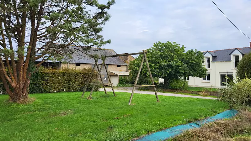 En exclusivité, sur la commune des Vallons de l'Erdre, à 4 kms de Saint mars La Jaille, ancienne exploitation agricole, sans voisinage (minimum 400m de toutes habitations), offrant une grande maison se composant en rez de chaussée, d'une grande pièce de vie avec cheminée insert donnant également sur la cuisine aménagée et équipée, trois chambres, salle d'eau, wc, débarras. A l'étage : trois chambres, salle de bains, wc. nombreux placards, pompe à chaleur. Un ensemble de dépendances d'environ 1000 m2 au total entre hangars et batisse. Le tout sur un terrain de plus d'un hectare entièrement libre de fermage.