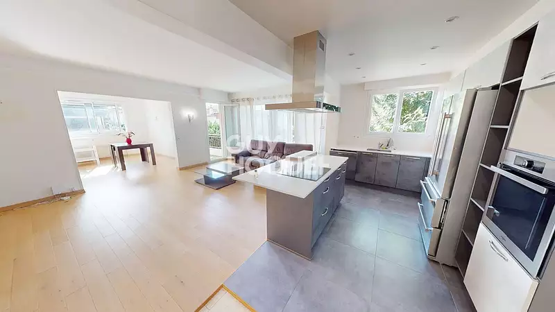 Découvrez cette magnifique maison de 147 m² située à Bondy, offrant un cadre de vie idéal pour les familles. Avec ses 6 pièces, dont 4 chambres, cette propriété est un véritable havre de paix. Vous serez séduit par sa cuisine américaine aménagée et équipée, parfaite pour concocter de délicieux repas en famille. Le séjour, exposé sud-est, vous garantit une luminosité optimale tout au long de la journée. La maison est en très bon état, construite en pierre dans le style des années 60, avec des fenêtres en PVC double vitrage et des volets roulants électriques. Vous apprécierez le confort de son chauffage au gaz et la climatisation dans les chambres pour les chaudes journées d'été. Le calme ambiant et l'absence de vis-à-vis vous permettront de profiter pleinement de votre espace extérieur sur un terrain de 278 m². Pour votre confort, cette maison dispose d'un garage double, d'une cave et d'un rez de jardin. Vous pourrez également profiter d'un balcon pour vos moments de détente. Idéalement située, vous serez à seulement 5 minutes à pied de l'arrêt de tramway 'Les Coquetiers' et à 10 minutes du RER, facilitant vos déplacements. Les commerces sont à 1 km, et vous trouverez plusieurs établissements scolaires à proximité, tels que l'École maternelle Pierre Curie et le Collège Pierre Curie. Ne manquez pas cette opportunité unique de devenir propriétaire d'une maison spacieuse et lumineuse à Bondy. Contactez l'agence Guy Hoquet Pavillons Sous Bois pour organiser une visite !