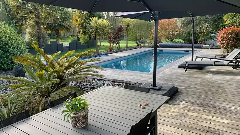 Au calme de la campagne camorienne, non loin de Pluvigner, ce bien vous offre un cadre de vie paisible et de belles prestations. Vous serez séduit dès l'entrée par la luminosité du double séjour, entièrement bordé de baies vitrées, donnant sur une vaste terrasse pourvue d'une piscine et idéalement exposée sud ! La cuisine semi ouverte est aménagée équipée et bénéficie de la présence d'un cellier. Côté nuit, se trouvent une suite parentale avec dressing et salle de bains, ainsi que 2 chambres bien agencées, un wc indépendant et une salle de bains avec wc. Un garage de 21m² , de larges espaces de stationnement et un jardin paysagé viennent parfaire ce havre de paix édifié sur un terrain clos d'environ 3 400m². (6.02 % honoraires TTC à la charge de l'acquéreur.)