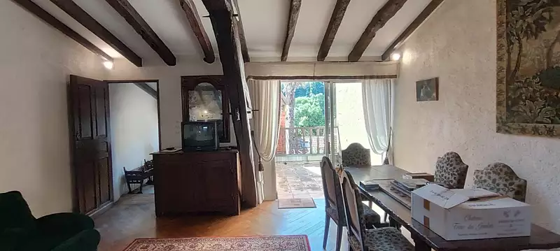 2em : Magnifique 3em chambre de 38.00m² avec poutres apparentes et cheminée ouverte + une terrasse de 7m² côté cour et vue sur la Dordogne.