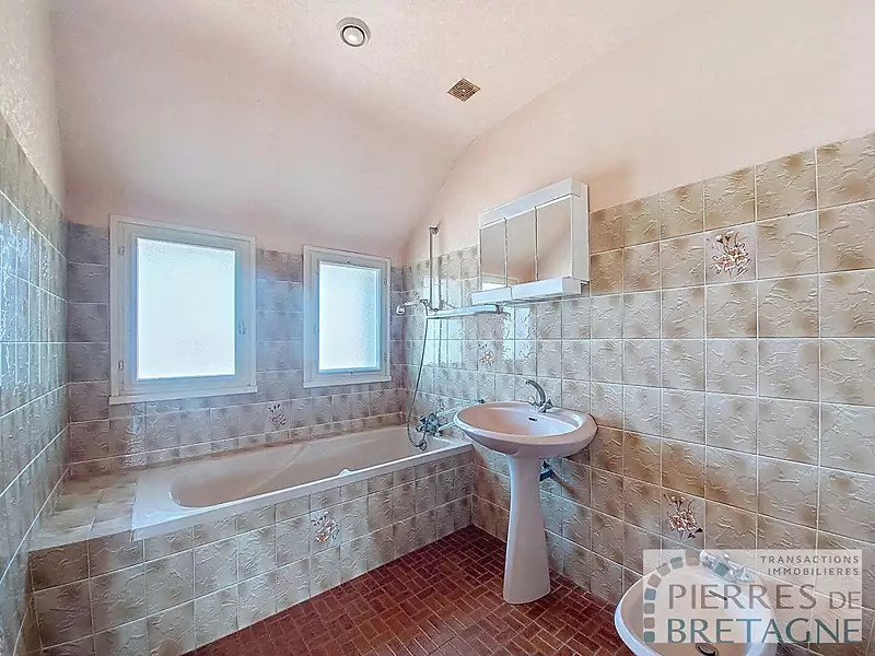 Située au Conquet, cette grande maison familiale offre un cadre de vie agréable, à proximité des commodités et du littoral, à 15 minutes à pied de la passerelle du Croaë. Édifiée sur un sous-sol total de plus de 200 m², elle dispose d'un vaste espace permettant le stationnement de plusieurs véhicules, un espace chaufferie. Parfait pour les bricoleurs ou diverses activités. Au niveau principal, vous découvrirez une entrée desservant une cuisine aménagée, un grand salon-séjour baigné de lumière avec un accès direct à une terrasse exposée plein sud, idéale pour profiter des beaux jours. Une lingerie, une chambre et des WC complètent ce niveau de vie. A l'étage, un dégagement mène à cinq belles chambres toutes dotées d'un placard, une salle de bains et des WC indépendants. Le tout est implanté sur une belle parcelle de plus de 1 200 m², offrant un environnement calme et verdoyant, parfait pour les familles ou les amoureux d'espace. Des travaux seront à prévoir afin que cette maison aux beaux volumes révèle tout son potentiel ! (4.58 % honoraires TTC à la charge de l'acquéreur.)Afficher plus