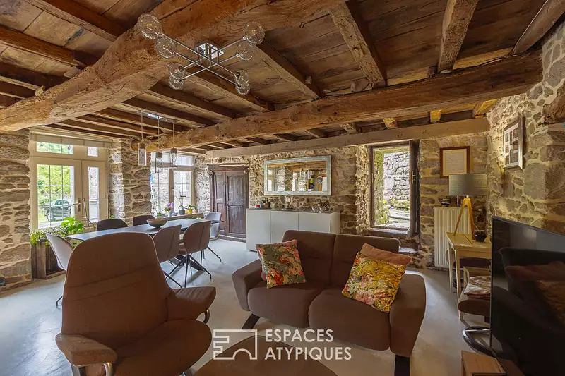 Nichée au coeur du centre historique de Moncontour, cette charmante maison en pierre du XVIIe siècle déploie environ 148 m² habitables sur une parcelle d'environ 1 000 m². A seulement 19 minutes de Lamballe et 18 km des plages, elle conjugue le charme de l'ancien à un cadre de vie privilégié, au sein d'une cité médiévale vivante. Rénovée avec soin dans le respect de ses matériaux d'origine, la maison conserve toute son authenticité : murs en pierre et à la chaux, poutres apparentes, anciennes cheminées. Chaque détail reflète l'âme du lieu. La cuisine aménagée et équipée s'ouvre sur un salon-séjour convivial, réchauffé par une cheminée d'époque agrémentée d'un poêle à bois. Un vestiaire avec WC, une buanderie et une chaufferie complètent le rez-de-chaussée. A l'étage, l'escalier en bois dessert trois chambres, dont une suite avec dressing, salle d'eau et WC. En demi-niveau, une quatrième chambre dispose également de sa propre salle d'eau avec WC, idéale pour recevoir. A l'extérieur, un jardin clos de murs s'épanouit au pied des remparts. Allées fleuries, potager, terrasse en bois bien exposée, l'ensemble compose un véritable havre de verdure en plein coeur de ville. Les écoles, commerces et services sont accessibles à pied, dans ce village classé au riche patrimoine. Un bien singulier, où caractère historique et douceur de vivre s'unissent dans un cadre propice à un projet de maison de famille ou de résidence secondaire inspirée. CLASSE ENERGIE : C / CLASSE CLIMAT : A Montant moyen estimé des dépenses annuelles d'énergie pour un usage standard établi à partir des prix de l'énergie de l'année 2021, 2022, 2023 : entre 1645 euros et 2225 euros Les informations sur les risques auxquels ce bien est exposé sont disponibles sur le site Géorisques : www.georisques.gouv.fr Contact : Isabelle DEVOS : 06.77.35.43.82 RSAC SAINT-BRIEUC 518 348 032 Isabelle DEVOS (EI) Agent Commercial - Numéro RSAC : 518 348 032 - SAINT-BRIEUC.