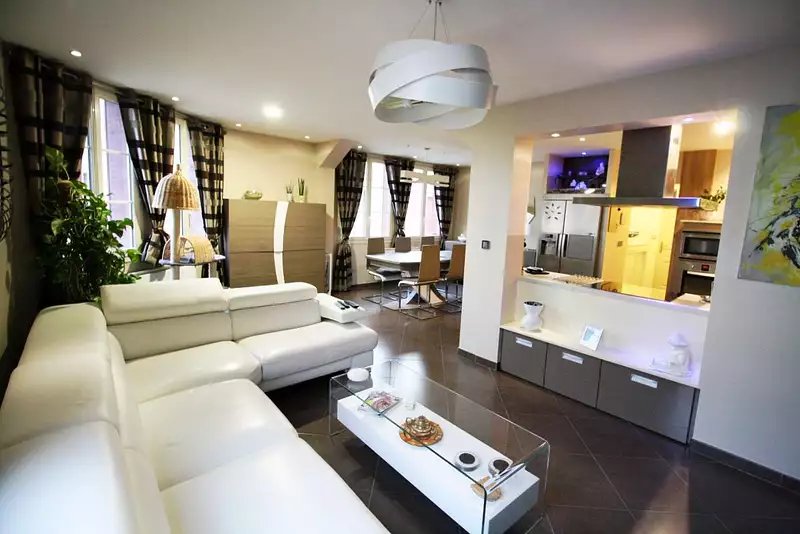 Grand séjour lumineux de 46 m² avec cuisine ouverte haut de gamme