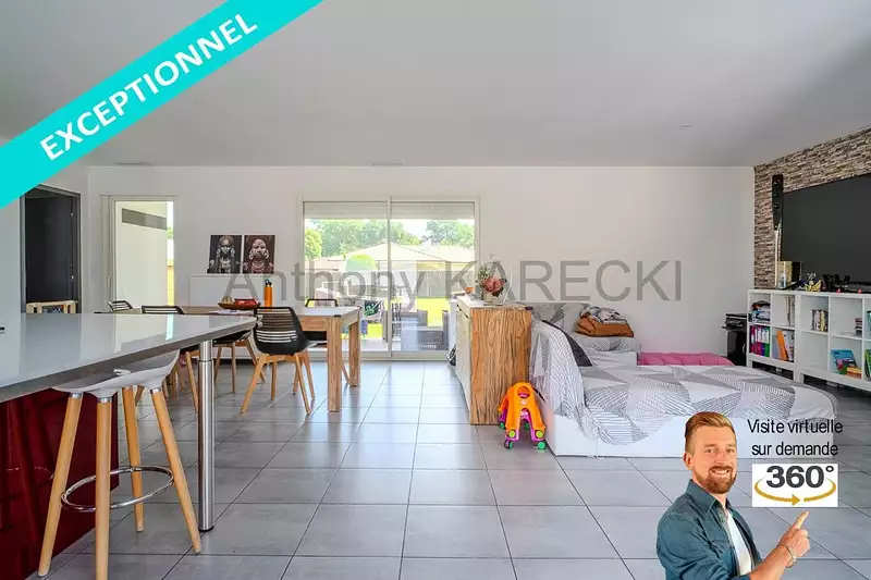 Cette maison contemporaine de plain pied et d’une surface de 147 m² a été achevée en 2020. Elle est composée d’une pièce de vie de 60 m² avec une grande cuisine équipée et un cellier. Les 5 chambres dont une suite parentale de 20m² avec salle de douche neuve, wc et dressing est complété par une deuxième grande salle de bain neuve plus un wc séparé.