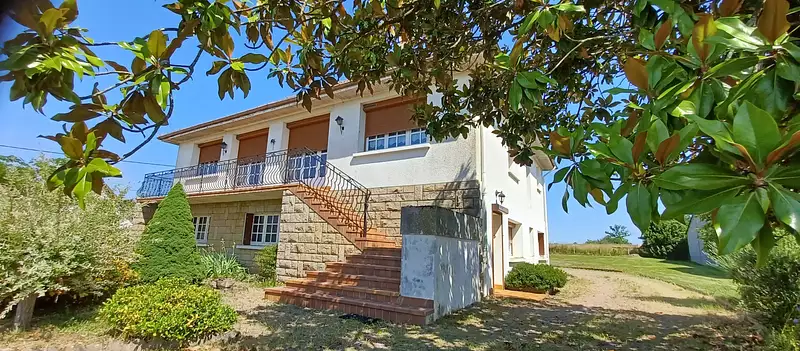 Maison élevée sur Rez de jardin aménageable en appartement : pièce d'entrée accédant à l'étage, garage double, 2 grandes pièces avec fenêtres, buanderie avec point d'eau, placards muraux et toilettes. Escalier béton (monte-escalier électrique neuf). Au-dessus, cuisine aménagée-équipée, salon-séjour double 42 m2 ouvrant sur balcon-terrasse, 3 chambres, salle de bains, toilettes. Chauffage puits canadien et électrique - triple vitrage - Volets roulants solaires. Dbles cloisons briques et isolation, prestations grande qualité, parfait entretien. Tout à l'égout.