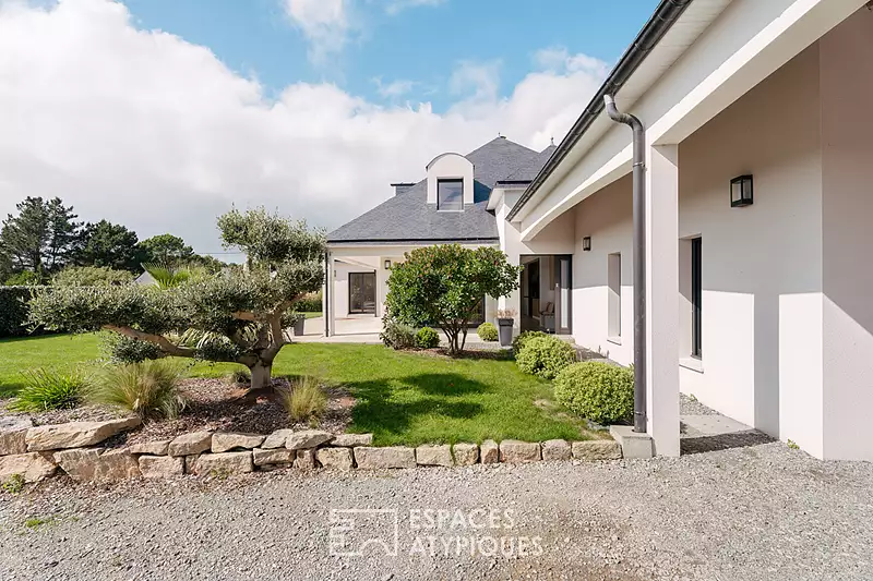 EXCLUSIVITÉ ESPACES ATYPIQUES Maison d'environ 148 m² construite en 2022, située sur la commune de Camoël, au calme, dans les hauteurs des bords de Vilaine et à moins de 10 minutes des plages de Pénestin. Cette propriété, baignée de lumière grâce à ses nombreuses fenêtres, offre un cadre de vie idéal, créant une ambiance chaleureuse et accueillante. Avec ses espaces intérieurs soigneusement agencés et ses volumes généreux, elle saura séduire toute la famille. Au rez-de-chaussée, vous découvrirez une entrée donnant sur un vaste salon-séjour et sa cuisine ouverte, entièrement aménagée et équipée, ainsi qu'une arrière-cuisine. Une chambre et une salle d'eau complètent ce niveau. A l'étage, un palier dessert trois belles chambres ainsi qu'une salle d'eau. Cette maison dispose également d'un double garage, d'un arrière-garage avec local technique et de son grenier. Un grand carport vient également ajouter de la commodité. Le jardin paysager est parfait pour profiter des repas en plein air et des moments de détente en famille. A proximité des commodités, de la mer et des bords de Vilaine, ce bien allie confort, modernité et qualité de vie. Prix de vente HAI : 535 000 euros Honoraires charges acquéreurs 4,90 % = 25 000 euros Prix net vendeur : 510 000 euros CLASSE ENERGIE : A / CLASSE CLIMAT : A Montant moyen estimé des dépenses annuelles d'énergie pour un usage standard, établi à partir des prix moyens des énergies indexés sur les années 2021, 2022, 2023 : entre 450 euros et 650 euros/an Les informations sur les risques auxquels ce bien est exposé sont disponibles sur le site géorisques : www.georisques.gouv.fr Denise Muteau RSAC Vannes 503 556 045 Contact : 06 12 71 52 43 (4.90 % honoraires TTC à la charge de l'acquéreur.) Denise Muteau (EI) Agent Commercial - Numéro RSAC : 503 556 045 - VANNES.