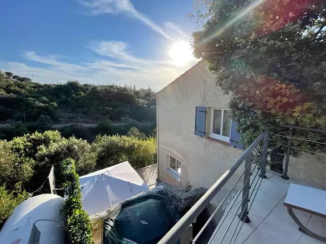 Quartier Saint Martin - Située à seulement 7 minutes du village de la Turbie, en pleine verdure et au calme absolu, trés agréable maison rénovée avec goût d'environ 148m2 sur 2 niveaux sur une parcelle de 1,304m2.