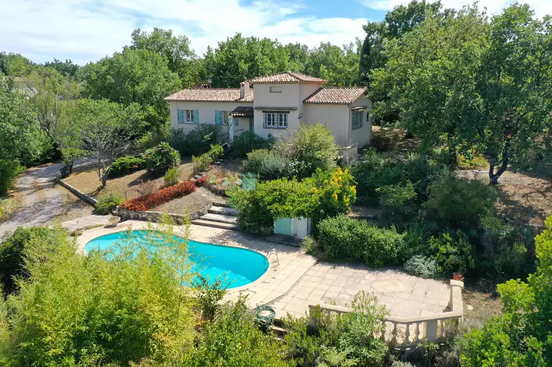 * SAINT CEZAIRE SUR SIAGNE * Sur un terrain de 2500 m², jolie villa de 148 m² avec sous sol total de 62 m² La maison de plain pied se compose : entrée, cuisine équipée et aménagée, séjour salon avec cheminée insert donnant sur terrasse, 3 chambres, 2 salles d'eau-wc, un studio indépendant climatisé avec une salle de bains wc. au sous sol : garage, 2 caves, chaufferie. Espace piscine avec terrasse. Abri de jardin Assainissement : fosse septique. (4.17 % honoraires TTC à la charge de l'acquéreur.)