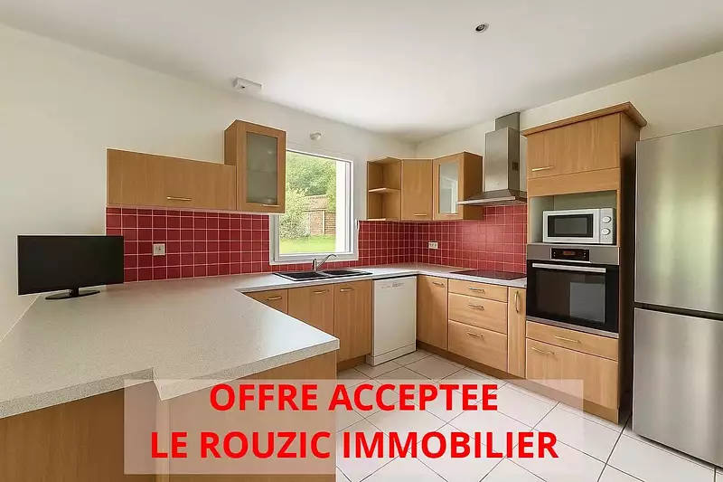 AU RDC, la maison se compose d'une cuisine ouverte aménagée et équipée, de 3 chambres, d'une salle d'eau, de WC ind et d'une magnifique véranda ouverte sur le jardin paysagé.