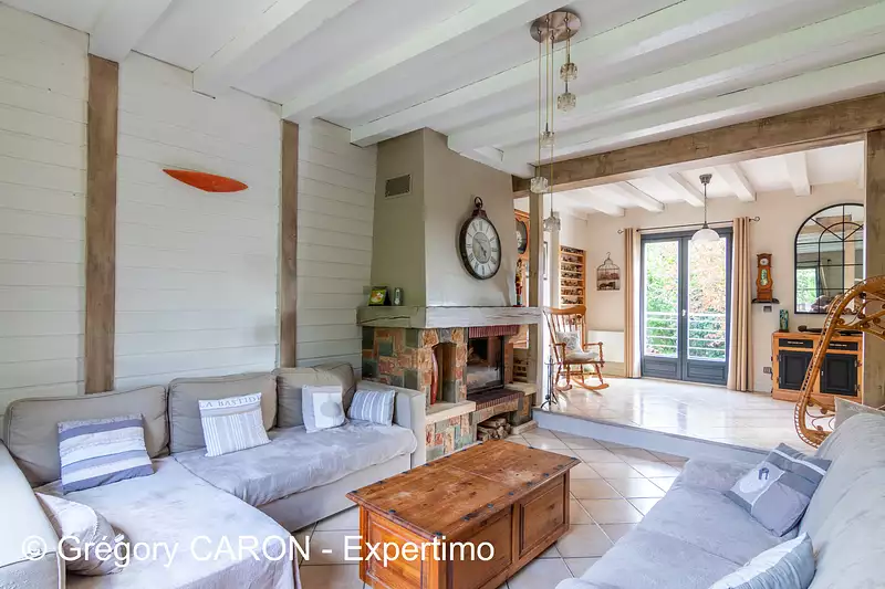 Cette maison de 149 m2 environ, étendue sur une surface utile d'environ 170 m2 (+ sous-sol total), est un véritable havre de paix pour ceux qui cherchent l'équilibre parfait entre la vie urbaine et le calme résidentiel. L'entrée vous accueille chaleureusement et vous guide vers un double séjour lumineux avec cheminée, qui s'ouvre sur une terrasse tranquille - l'endroit parfait pour les repas en plein air ou simplement pour savourer un moment de détente. La cuisine, à la fois meublée et équipée, offre aussi un accès direct à cette terrasse et au jardin. Grâce à son espace et à l'îlot central, elle offre la possibilité d’y prendre ses repas.