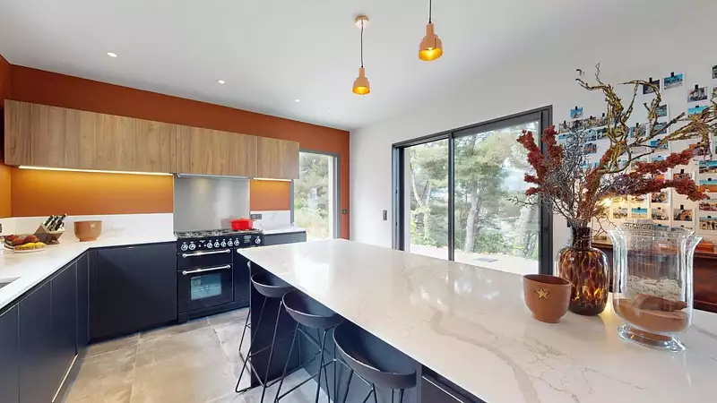 Située à seulement 10 minutes du centre-ville de Nice, à 25 minutes de l'aéroport et à proximité immédiate de l'autoroute, cette propriété bénéficie d'une localisation idéale. Elle offre des matériaux de construction de haute qualité, des finitions impeccables telles que des fenêtres double vitrage, une climatisation réversible, une cuisine équipée avec cave à vin. Un atout supplémentaire : un poêle dans le salon pour des soirées chaleureuses en hiver.