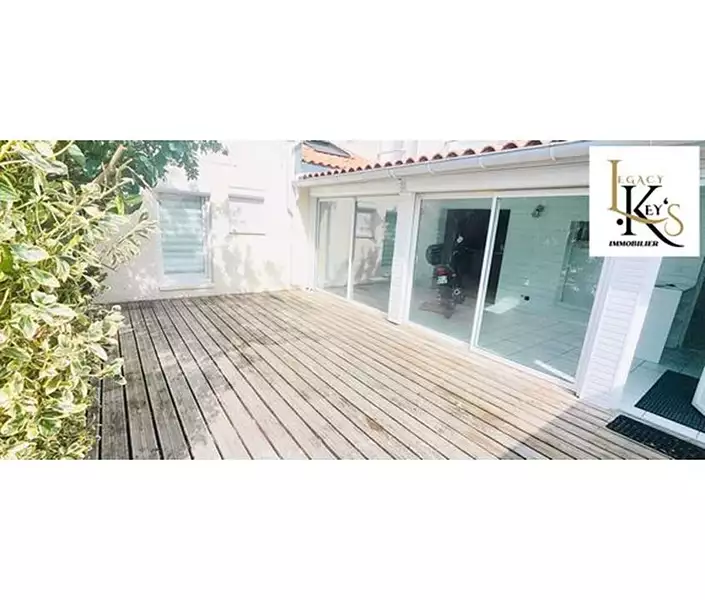 Une véranda isolée, un jardin intime avec terrasse en bois et une place de stationnement privative viennent parfaire cet ensemble.