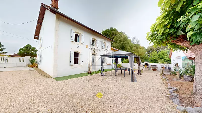 L'agence "TERRE DU SUD-OUEST immobilier" d'HAGETMAU vous propose à la vente cette agréable maison située en fond d'impasse, bénéficiant d'un environnement calme tout en restant proche de toutes les commodités. Un cadre idéal pour profiter de vos moments de détente. Édifiée sur une parcelle clôturée de 2 513 m² dont 1887 m² est classée en zone UC constructible, offrant la possibilité de détacher une parcelle ou d'y édifier une nouvelle habitation. La maison se compose au rez-de-chaussée : 1 séjour/salle à manger avec cheminée insert, 1 cuisine indépendante aménagée, 1 buanderie d'une chambre de 17 m² avec baie vitrée ouvrant sur le jardin, 1 salle de bains avec baignoire et douche et 1 WC indépendant. A l'étage, vous disposez de 4 chambres confortables (10 à 15 m²). De plus des combles avec accès indépendant sont aménageables augmentant la surface de vie d'environ 45 m². Elle dispose d'un garage fermé d'une surface de 13,5 m² environ.