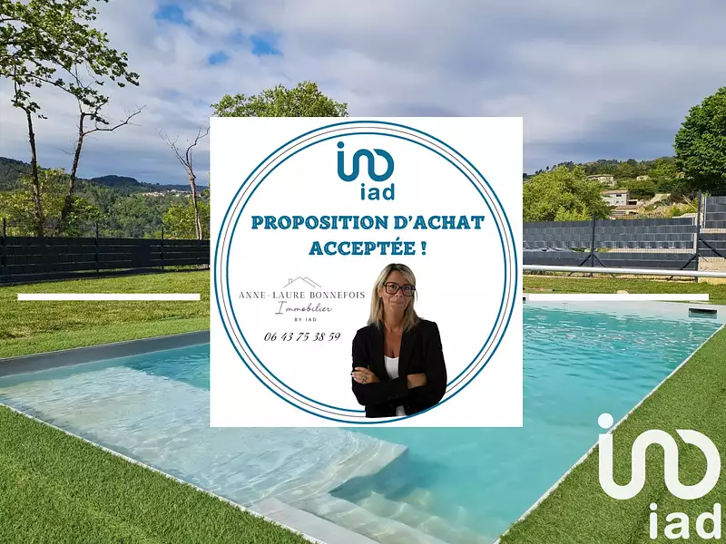 iad France - Anne-Laure Bonnefois vous propose: LES OLLIÈRES SUR EYRIEUX – Au cOEur de la vallée de l'Eyrieux, cette magnifique villa CONTEMPORAINE de plain-pied vous séduira par ses PRESTATIONS haut de gamme et son CONFORT absolu. Nichée sur un terrain paysagé de 1340 m² environ, avec piscine CHAUFFÉE et DOUBLE GARAGE, cette propriété n'attend que vous !