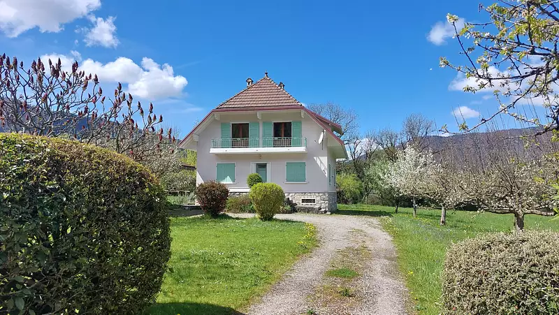Dans un cadre idyllique, entourée des montagnes, entre les Aravis et le lac d'Annecy, magnifique maison individuelle d'environ 150 m2 habitables avec un sous-sol complet. Elle est composée d'une lumineuse pièce de vie avec une cuisine équipée, de 6 chambres, et de deux salles de bains. L'ensemble est implanté sur un terrain plat et arboré de1882 m2 avec un abri voitures. Vous serez séduit par son charme et son environnement.