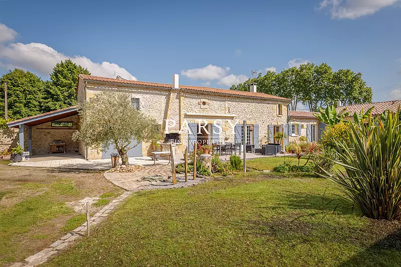 MAISON PLAIN PIED - 3 CHAMBRES - JARDIN - Belle maison familiale en pierres datant de 1800, très bien entretenue ,baignée de lumière, sur une belle parcelle arborée, sans vis à vis. Cette maison pleine de charme est située dans un environnement verdoyant sur la commune d'Arbanats. Vous serez séduits par la pièce de réception très lumineuse avec cheminée donnant directement sur le jardin plein sud. Attenant au séjour, une vaste cuisine équipée. L'espace nuit se compose de 3 chambres, 1 dressing, 1bureau, ainsi que d'une salle d'eau et de WC séparés. Une belle cave en pierre et un garage complètent ce bien. Le point fort de cette maison de plain pied c'est l'espace extérieur avec un jardin paysagé, d 'une terrasse couverte de 24 m² attenante au garage, une seconde terrasse avec Store Banne et la possibilité d'aménager les combles ayant une bonne hauteur sous plafond pour une surface de 116 m² A 25mn de Bordeaux, venez découvrir cet havre de paix, coup de coeur assuré !