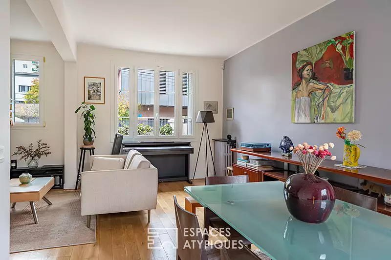 A Asnières, au coeur du quartier résidentiel des Agnettes, cette maison familiale des années 1950 séduit par son charme intemporel et son confort contemporain. La maison développe une surface au sol de 203 m² (126 m² Carrez) et s'ouvre sur deux agréables espaces extérieurs, dont une terrasse paisible à l'abri des regards. Traversante Est-Ouest, lumineuse et sans vis-à-vis, cette maison individuelle allie fonctionnalité, volumes généreux et prestations soignées. Le rez-de-chaussée accueille une grande cuisine familiale semi-ouverte entièrement rénovée, dotée d'un coin repas donnant directement sur la terrasse arrière. Un vaste salon-séjour de près de 30 m², baigné de lumière naturelle, prolonge l'espace de vie et offre une belle perspective sur les extérieurs. A l'étage, un palier lumineux dessert trois chambres, dont une suite parentale traversante d'environ 20 m² avec dressing et salle d'eau attenante. Une salle de bain et un second WC complètent ce niveau. Le dernier étage mansardé abrite un palier polyvalent pouvant faire office d'espace lecture ou télévision, une chambre supplémentaire et un grand bureau. En sous-sol, un espace de 50 m² entièrement aménagé propose un bureau, une buanderie, une cave à vin, un atelier et des rangements. A l'avant, un jardin de 40 m² accueille un abri deux roues. A l'arrière, une terrasse intime de 25 m², au calme offre un cadre de vie agréable et sécurisé A proximité immédiate des écoles, commerces et transports (métro ligne 13 et future ligne 15 à 3 minutes à pied). Entièrement ravalée et isolée par l'extérieur en 2023, cette maison parfaitement entretenue se distingue par sa luminosité, sa distribution fluide et son atmosphère chaleureuse. Un bien rare à Asnières, idéal pour une vie familiale harmonieuse. CLASSE ENERGIE : D / CLASSE CLIMAT : D. Montant moyen estimé des dépenses annuelles d'énergie pour un usage standard, établi à partir prix moyens des énergies indexés sur les années 2021, 2022, 2023 (abonnements compris) : entre 2 240 euros et 3 100 euros. Les informations sur les risques auxquels ce bien est exposé sont disponibles sur le site Géorisques : https://www.georisques.gouv.fr Contact : Sophie YON- 06 18 36 65 84 - EI - Agent Commercial - RSAC : 837 580 166 Nanterre. Sophie YON (EI) Agent Commercial - Numéro RSAC : 837 580 166 - Nanterre.