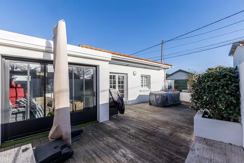 BOURCEFRANC LE CHAPUS - Aux portes de l'île d'Oléron et proximité commerces Laissez vous séduire par cette charmante maison en excellent état comprenant au rez-de-chaussée : entrée, jolie cuisine équipée (plaque, hotte, four) avec accès terrasse, belle pièce de vie très lumineuse, chambre/placard, salle d'eau/douche à l'italienne, bureau, buanderie, à l'étage : palier, 2 chambres, salle d'eau/douche à l'italienne. Salon indépendant ou 4ème chambre. Garage attenant avec porte électrique. Patio et terrasse.