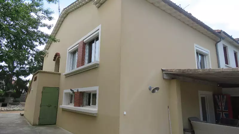 CARCASSONNE : Au pied de la cité, superbe maison 150 m² environ des années 50 offrant 4 chambres dont 1 en RdC, vaste séjour, cuisine équipée, 2 salles d'eau, cellier et buanderie. Bel espace piscine totalement intime (entretien : Brome) sur terrain paysagé et arboré de 835 m². Beaucoup de charme ! Maison et studios vendus loués (920 euros et 430 euros)