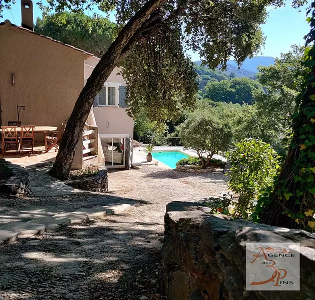 Belle exposition et superbe vue dégagée pour cette jolie villa d'environ 150m² habitables. Nichée dans son écrin de verdure et sans vis à vis, vous profiterez du jardin paysagé et de la piscine (au sel et pompe à chaleur) qui surplombent le village de Collobrières. Plusieurs terrasses entourent la maison et vous permettent de profiter du soleil, ou de l'ombre, à chaque moment de la journée.