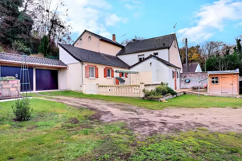 A l'extérieur : un grand garage indépendant 2 VL, abris de jardin, jardin arboré, terrasse.